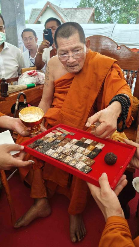 -พระสมเด็จชินบัญชร รวย รวย รวย หลวงปู่มหาศิลา สิริจันโท เมตตาเชียนยันต์ ตั้งชื่ออธิฐานจิต เนื้อขาวสมเด็จกกำไลทองคู่ อกฟังเพชร ตะกรุดเงิน 1 ดอก หลังฝังก้อนมวลสาร เลข 58
