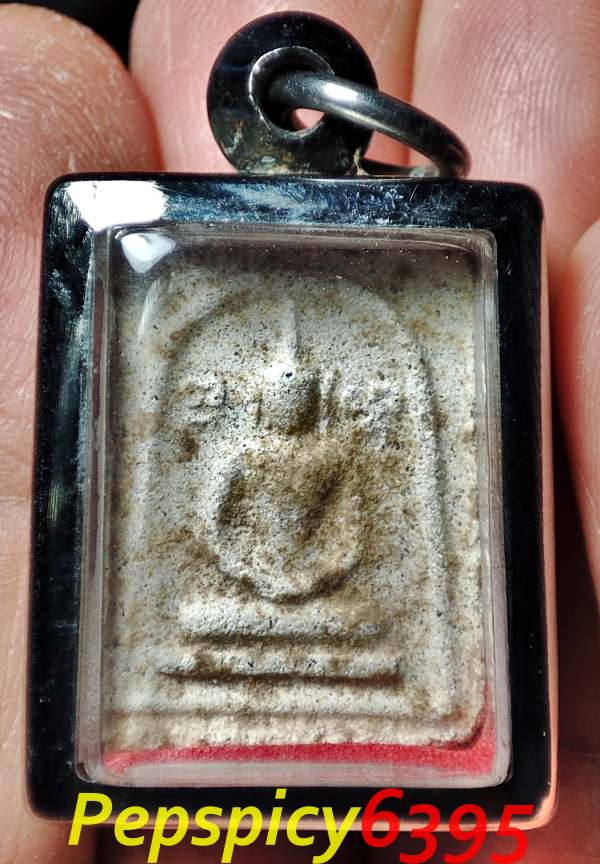 พระสมเด็จเหม็นหลวงพ่ออุ้น วัดตาลกง (สมเด็จคะแนนเหม็น) เนื้อผง ปี 2495 จ.เพชรบุรี พร้อมกรอบสแตนเลส