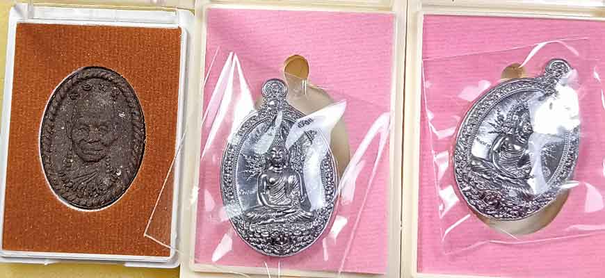 เหรียญพระรัตนมงคลบพิธ (เหรียญพุทธศิลป์) หลังพระพิฆเนศ รุ่นทรัพย์พูนทวี หลวงปู่เฮง ปภาโส ปลุกเสก ออกวัดพนมศิลาราม(เขาสวาย) จ.สุรินทร์ ปี 2563 2 เหรียญ