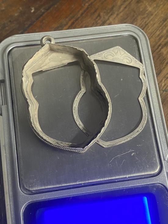<<กรอบเงินแท้>> มือ2 ยกซุ้มหัวสิงห์ ใส่เหรียญเสมาหลวงปู่ทวด รุ่นเลื่อนสมณศักดิ์วัดห้วยมงคล งานมือช่างทองแกะลายลึกๆสวยๆ หนัก4.67g