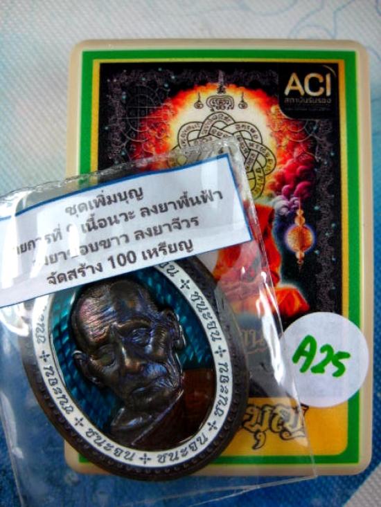 ### เนื้อนวะ ### เหรียญรุ่นชนะจน เนื้อนวะโลหะลงยาพื้นฟ้า ขอบขาว ลงยาจีวร หลวงปู่สมาน (---A25---) |