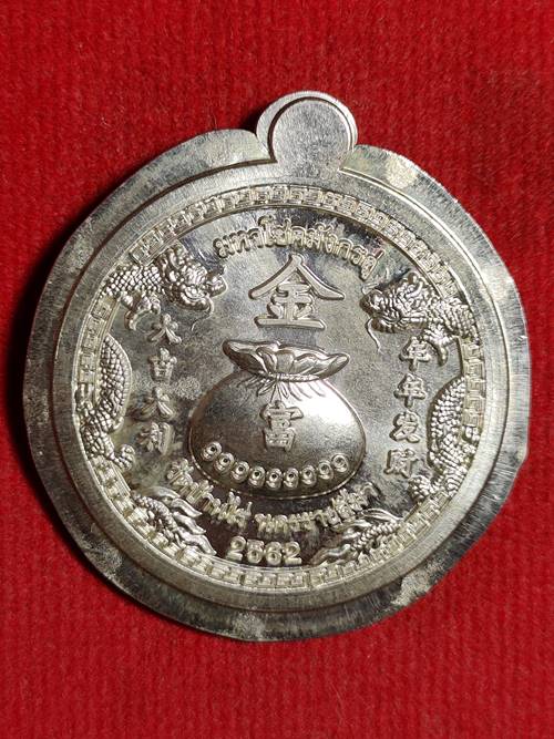 รุ่นแรกเหรียญขวัญถุง มหาโชคมังกรคู่ หลวงพ่อทอง สุทธสีโล ออกวัดบ้านไร่ ปี 62 เนื้อ เงินลงยาสีเขียวพิมพ์กรรมการไม่ตัดปีกหลังยันต์ หมายเลข 146 ตอกโค๊ตเลข 9 เก้าตัว เคาะเดียวแดง |