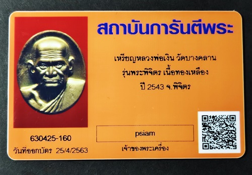 เหรียญรูปไข่ หลวงพ่อเงิน รุ่นพระพิจิตร ปี เนื้อทองเหลือง สวยๆแปมป์ พร้อมใบประกาศ บัตรรับรอง >>> มวลสารสุดยอด <<< หลวงปู่หมุน ร่วมปลุกเสก