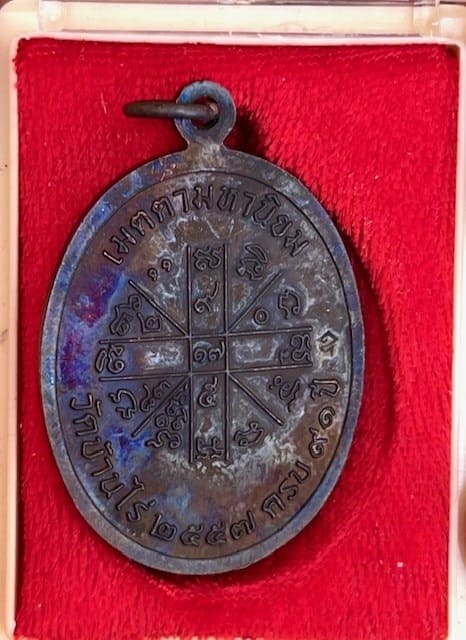 หลวงพ่อคูณ เหรียญเจริญพรบน 2 พรหมเทพ เนื้อทองแดงรมดำ เลข No.3134 จมูกโด่ง ผิวรุ้ง พร้อมกล่องเดิม |
