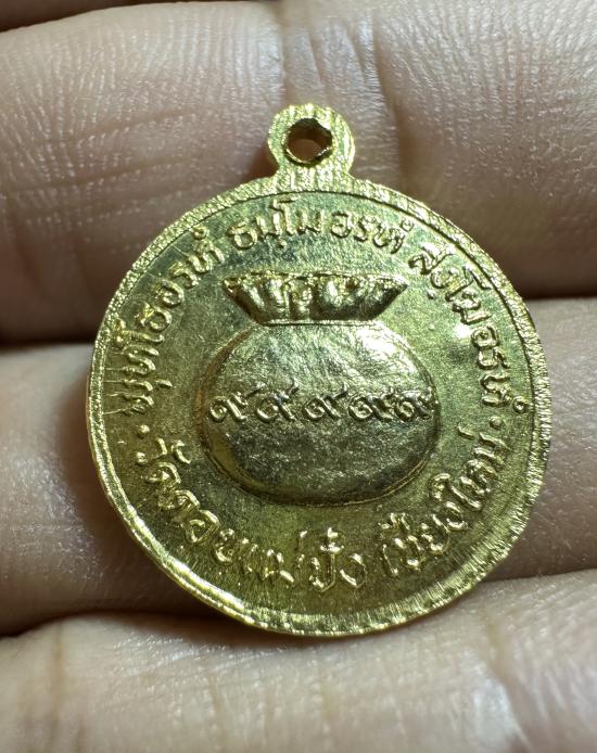 เหรียญขวัญถุงเล็ก เนื้อกะไหล่ทอง หลวงปู่แหวน สุจิณโณ ปี 2520 |