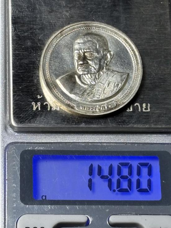 เหรียญเนื้อเงินหลวงปู่คร่ำ วัดวังหว้า อายุ97ปี ปี37 ตอกโค๊ต3757เลขสวย เคาะเดียว