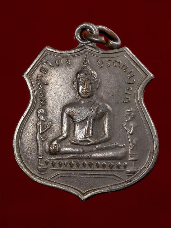วัดใจ40 เหรียญอาร์ม หลวงพ่อโต วัดพนัญเชิง พิมพ์ใหญ่ ตอกโค๊ตภาษาจีน (นิยม) กะไหล่เงิน ปี 2517 จ.อยุธยา