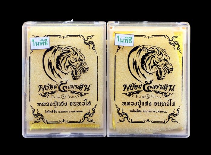 +!!เคาะเดียวllดง ตลอดสาย!!+ (รับ 2 เหรียญ) เหรียญ พยัคฆ์ 5 แผ่นดิน หลวงปู่แสง วัดโพธิ์ชัย จ.นครพนม ปี62 เนื้อทองแดงรมดำ หน้ากากปลอกลูกปืน เลขโค้ดสวยๆตามรูป พร้อมกล่องครับ