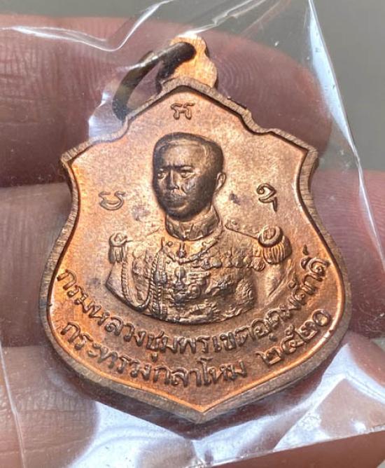 เหรียญอาร์มใหญ่ หลวงปู่แหวน หลัง กรมหลวงชุมพรฯ กระทรวงกลาโหมสร้าง ปี 2520 เนื้อทองแดงผิวไฟ ไม่ผ่านการใช้ นิยม |