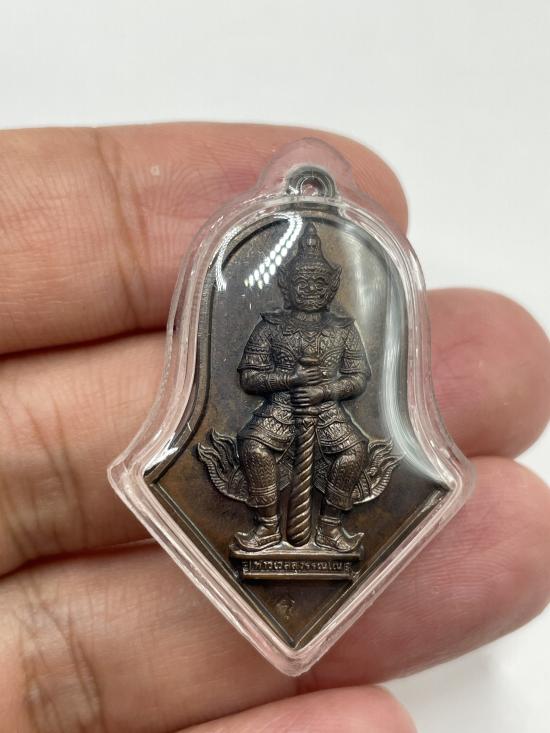 เหรียญจำปี ท้าวเวสสุวรรณ หลวงพ่ออิฏฐ์ วัดจุฬามณี รุ่นแรก เนื้อทองแดง เหล็งยาว ปี2545 เลี่ยมพลาสติกสวยๆ