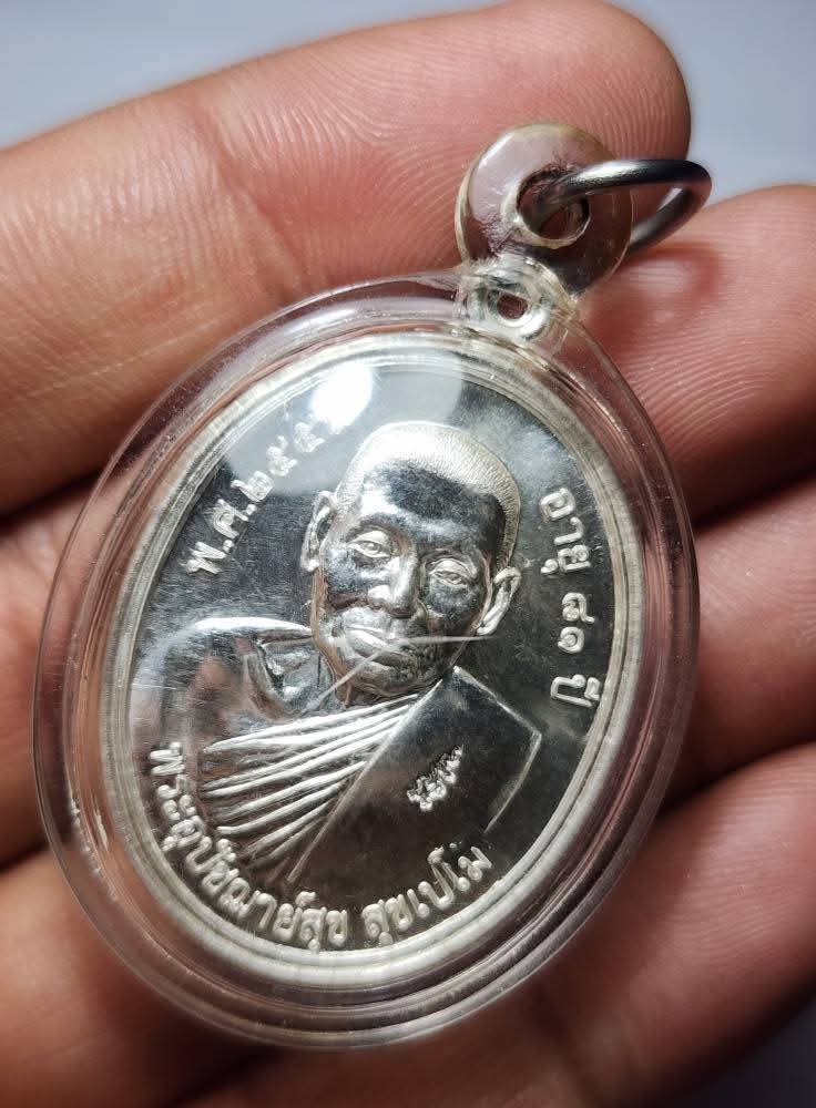 เหรียญอุปัชฌาย์ เนื้อเงิน หลวงปู่สุข วัดป่าหวาย จ.สิงห์บุรี
