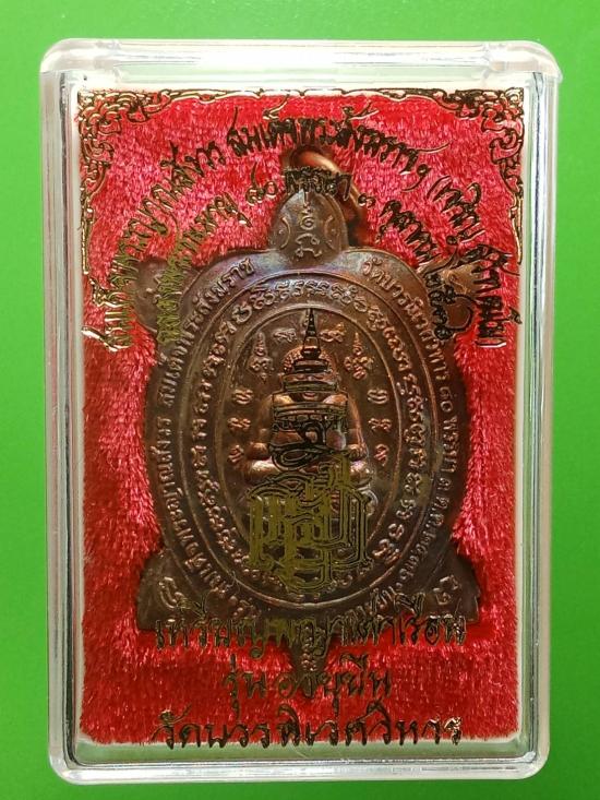 พญาเต่าเรือน รุ่นอายุยืน ฉลองพระชนมายุ ๘๐ พรรษา ๓ ตุลาคม ๒๕๓๖ เนื้อทองแดงผสมชนวนพระสังกัจจายน์ญส.ปี ๒๕๓๐ (พระสังกัจจายน์ญส.รุ่นแรก ปี ๒๕๓๐ เป็นรุ่นสำคัญมีส่วนผสมของชนวนพระกริ่งบวรรังสี ๒๕๒๘ และชนวนพระกริ่งปวเรศ ๒๕๓๐ ล้วน ๆ โดยไม่มีชนวนพระรุ่นอื่นเจือปนเลย) พิธีพุทธาภิเษก-ชัยมังคลาภิเษก ณ พระอุโบสถวัดบวรนิเวศวิหาร หลวงปู่หลิว ปณฺณโก วัดไร่แตงทอง เทพเจ้าแห่งพญาเต่าเรือน ร่วมปลุกเสกในพิธี หลวงพ่อเปิ่น หลวงพ่อแย้ม วัดสามง่าม หลวงพ่อพูล วัดไผ่ล้อม หลวงพ่อไสว วัดปรีดาราม หลวงพ่อแช่ม วัดดอนยายหอม หลวงพ่อยิด วัดหนองจอก หลวงพ่อสง่า วัดบ้านหม้อ ฯลฯ ร่วมพิธี เคาะเดียว พระมาพร้อมกล่องเดิม