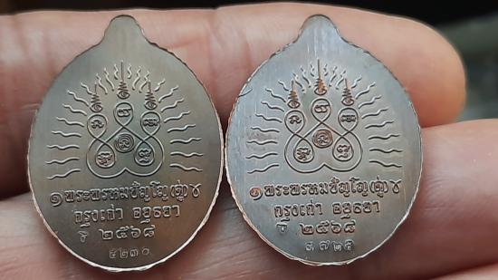 เหรียญเปิดโลกหลวงปู่ทวด หลวงปู่ดู่ รุ่น เปิดโลก(เปิดดวงรวย) จัดสร้างโดย วัดเทพกุญชร อยุธยา เนื้อทองแดง (จำนวน2เหรียญ หมายเลข 4230,3725