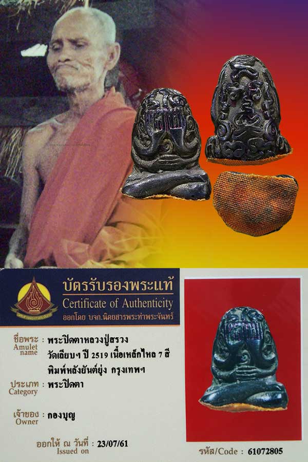 พระปิดตามหาลาภ เหล็กไหล7สี ปี 19 หลวงปู่สรวง เทวดาเล่นดิน อธิฐานขอได้เร็วและแรง