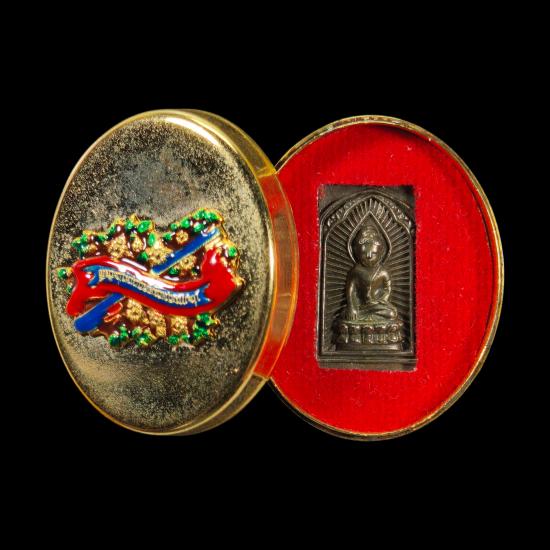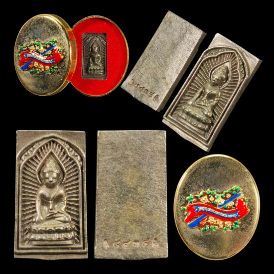 พระพิมพ์ประภามณฑล กริ่งมงคลเทพประสิทธิ์ ปลุกเสกโดย พระอาจารย์ต้อม วัดท่าสะแบง จัดสร้างโดย คุณ อั๋น โอกิ มีมวลสารวัตถุมงคล พรหมประสิทธิ์ เทพบันดาลทรัพย์ มงคลเทพประสิทธิ์ หมายเลข ๘๔๓๔ พร้อมตลับชุบทองลงยา |