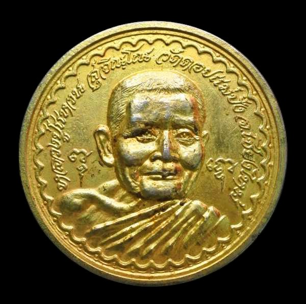 เหรียญหลวงปู่แหวน อธิฐานจิตเพื่อสืบศาสนาและป้องกันประเทศชาติ เป็นเหรียญขนาดใหญ่เส้นผ่านศูนย์กลาง 5 ซม. เนื้อกะไหล่ทอง |