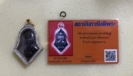 ทุน 6,500 บาท เปิดต่ำทุน!! เหรียญจำปี ท้าวเวสสุวรรณ หลวงพ่ออิฏฐ์ วัดจุฬามณี รุ่นแรก เนื้อทองแดง เหล็งสั้น ปี2545 เลี่ยมตลับทองอิตาลีสวยๆพร้อมบัตรรับรอง