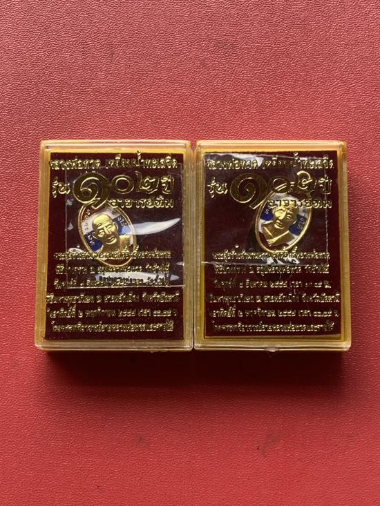 เคาะเดียวแดง เม็ดแตง 2องค์หลวงปู่ทวด รุ่น102ปีอาจารย์ทิม เนื้อชุบทองลงยาสีธงชาติ |
