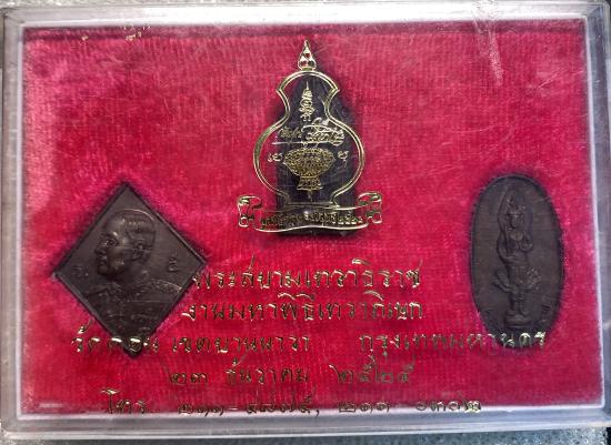 พระสยามเทวาธิราช มุลนิธิกัลยาวิสุทธิ์(ลพ.กึ๋น วัดดอน) สมโภชน์กรุงรัตนโกสินทร์200ปี พศ.2525เกจิดังหลายท่านปลุกเสก กล่องเดิมครบชุด
