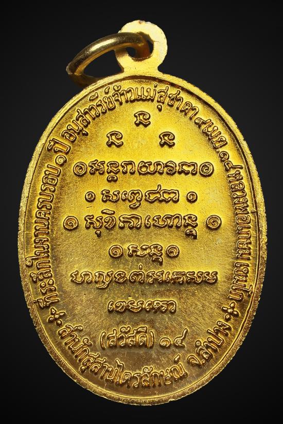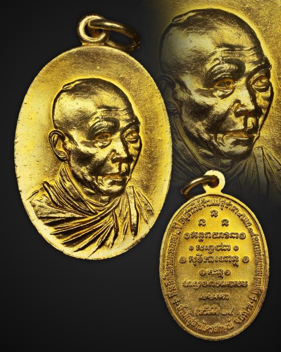 เหรียญกิ่งไผ่ (สวัสดี) หลวงพ่อเกษม เขมโก เนื้อทองแดงกะไหล่ทอง ปี 2518