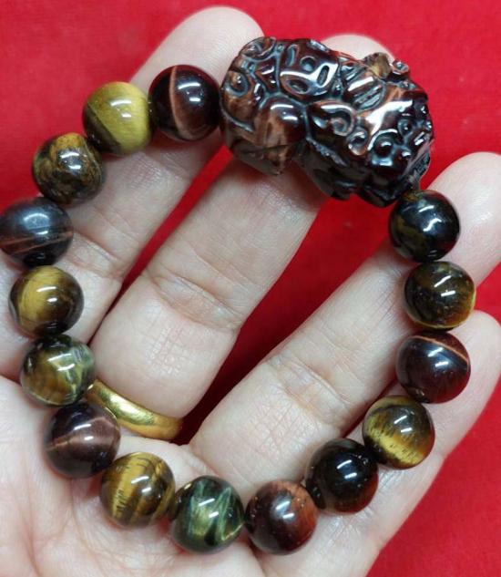***วัดใจ***สร้อยข้อมือปี่เซี๊ยะ หินไทเกอร์อาย 3 ทหารเสือ 10 มิล |
