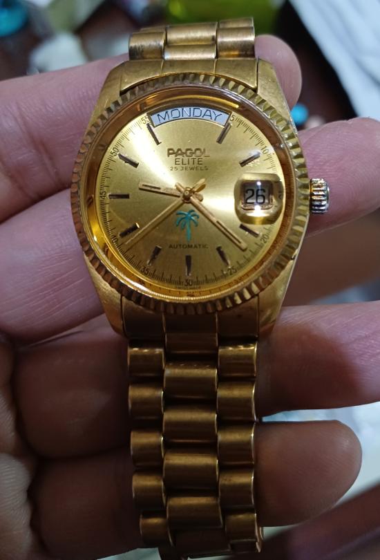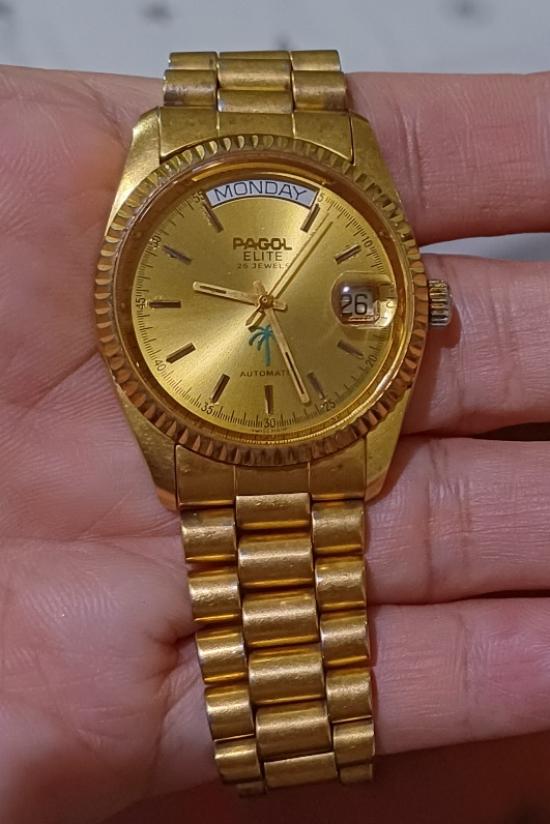 รายละเอียด Pagol 25jewels automatic swiss made สัญลักษณ์ต้นปามล์ เม็ดมะยมเเบบขันเกลียว สัปดาห์วันที่ตั้งเร็วได้ สภาพใหม่มาก ออกห้างมือ1ราคา15000บาท รับประกันตามกฏเวปครับ