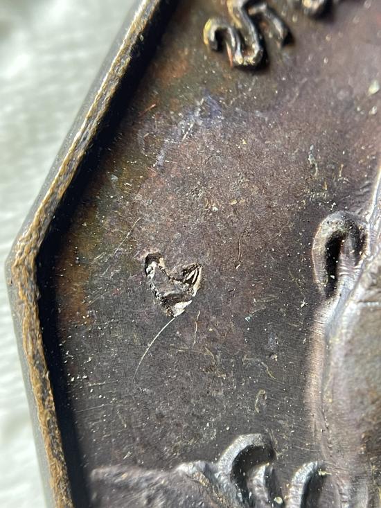 เหรียญเก้าเหลี่ยม เนื้อทองแดง รุ่นรักษาดินแดนไทย หลวงปู่แหวน สุจิณฺโณ วัดดอยแม่ปั๋ง อ.พร้าว จ.เชียงใหม่ ปี2520