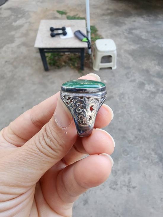 แหวนเงินหัวหยกพม่า เนื้อเทียน เม็ดโตๆ ขนาดประมาณ 62-63 ตามรูป