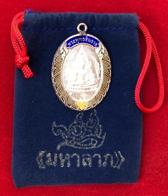 หลวงพ่อคูณ เหรียญเนื้อเงินหลังแบบ พระพุทธชินราช ห่วงเชื่อม มีหมายเลข+โค๊ต สร้าง 203 เหรียญ ปี53 พร้อมถุงวัดกำมะหยี่ เคาะเดียว