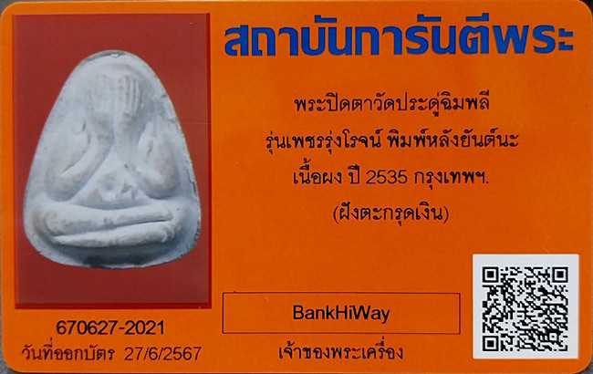 รายละเอียด พระปิดตาวัดประดู่ฉิมพลี มาพร้อมบัตรรับรองความแท้ครับ