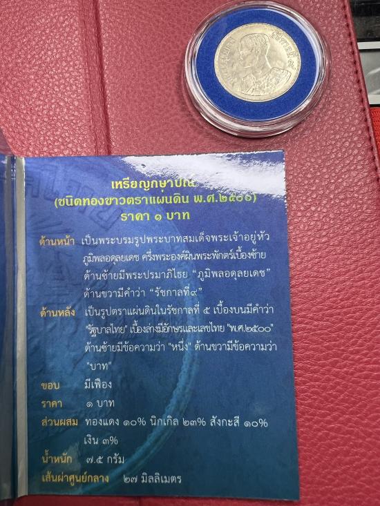 เหรียญ 1 บาทรัชกาลที่9 ชนิดทองขาวตราแผ่นดินพ.ศ. 2500 |