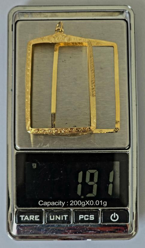 กรอบทองคำแท้ 80% มือ 1 ยกซุ้ม ขนาดหน้าจอ ขอบล่าง2.8xขอบกลาง2.7xขอบบน2.6xสูง4.0 cm,ใส่พระสมเด็จทั่วไปและรูปภาพ น้ำหนัก 1.91 กรัม