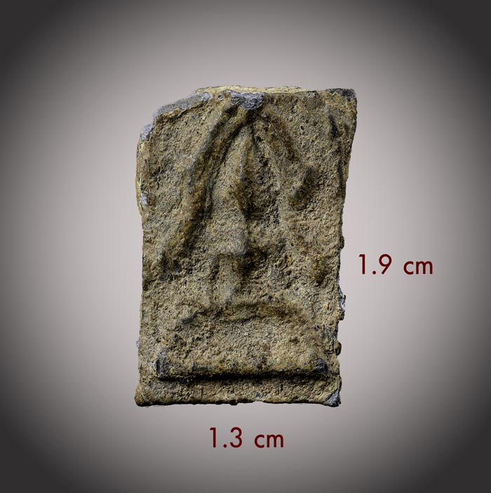 (วัดใจ)พระกรุ พิมพ์พระพุทธ ทรง 4 เหลี่ยม (ไม่ทราบกรุ)เนื้อชิน สภาพเก่ามีอายุ ขนาดพระ ฐาน 1.3 cm สูง 1.9 cm