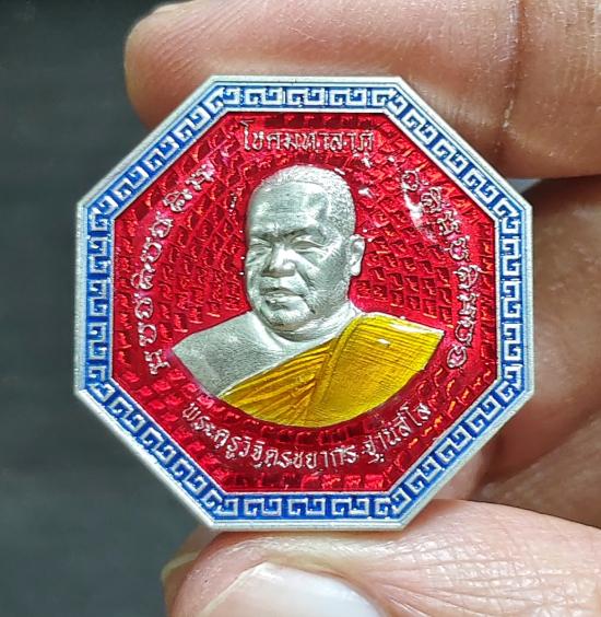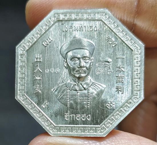 เหรียญยี่กอฮง โชคมหาลาภ โชคมหาเฮง (เนื้อเงิน ลงยาสีแดง) พระอาจารย์จิ๊ วัดธรรมิกาวาส (คังคาว)