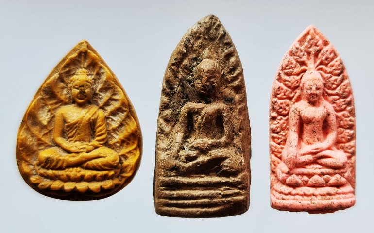 << วัดใจ >> พระผงใบโพธิ์ รุ่นแรก พระอาจารย์เปลี่ยน + พระรอดหลัง อ ครูบาอินทร + พระรอดหลวงหริภุญชัย รุ่นปลียอดฉัตรพระธาตุเจ้าหริภุญชัย |