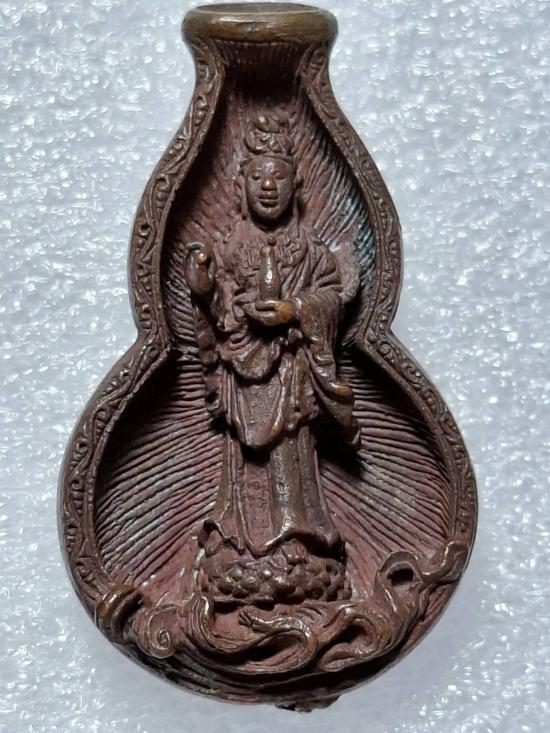 เหรียญหล่อพิมพ์น้ำเต้า เจ้าแม่กวนอิม รุ่นลายเซ็นต์ ปี36 |