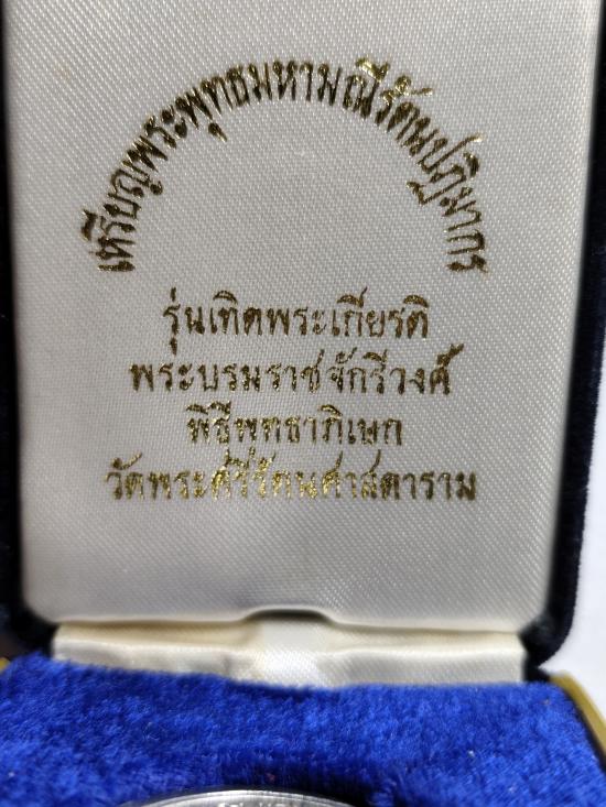 ชื่อพระเครื่อง เคาะแรกเหรียญ พระพุทธมหามณีรัตนปฏิมากร หลัง ร.1 รุ่นเทิดพระเกียรติ เนื้อเงิน พร้อมกล่องกำมะหยี่