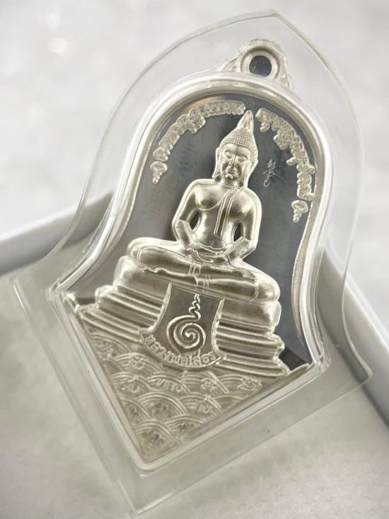 หลวงพ่อโสธรประทับหลังเท้าเวสสุวรรณโนเนื้อเงินพิมพ์ใหญ่ รุ่น สยบไพรีพินาศ