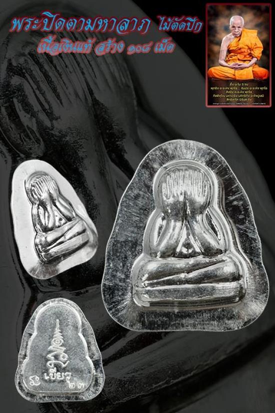 พระปิดตามหาลาภไม่ตัดปีก เนื้อเงินแท้ หลวงปู่เขียว วัดห้วยเงาะปัตตานี ปี ๒๕๕๘ สร้าง ๑๐๘ เม็ด