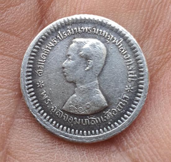 เหรียญกษาปณ์ หลังตราแผ่นดิน (เฟื้องหนึ่ง) พระบาทสมเด็จพระจุลจอมเกล้าเจ้าอยู่หัว (รัชกาลที่ 5) กรุงสยาม ราคาเหรียญ เฟื้องหนึ่ง ((เหรียญสร้างจากเนื้อเงินแท้)) เหรียญใช้หมุนเวียน |