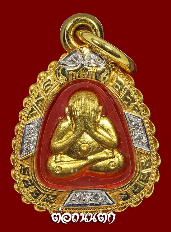 พระปิดตาชินบัญชร หลังรูปเหมือน หลวงพ่อคูณ เนื้อทองคำหมายเลข 190 เลี่ยมทองฝังเพชรแท้1 ตั้งค์ 8 เม็ดอย่างดี พร้อมใช้สวยวิ้งๆ