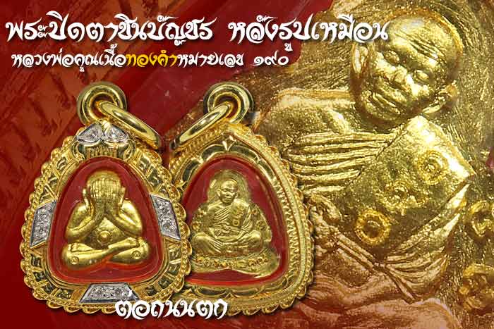 พระปิดตาชินบัญชร หลังรูปเหมือน หลวงพ่อคูณ เนื้อทองคำหมายเลข 190 เลี่ยมทองฝังเพชรแท้1 ตั้งค์ 8 เม็ดทองอย่างดี พร้อมใช้สวยวิ้งๆ