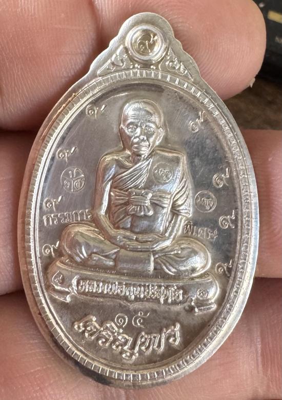 เหรียญ หลวงพ่อคูณ ปริสุทฺโธ รุ่นเจริญพรล่าง89 เต็มองค์ เนื้อเงินไม่ตัดปีกพิเศษกรรมการหลังแบบ หมายเลข15 น้ำหนักเนื้อเงิน25.3กรัม ไม่มีกล่องครับ