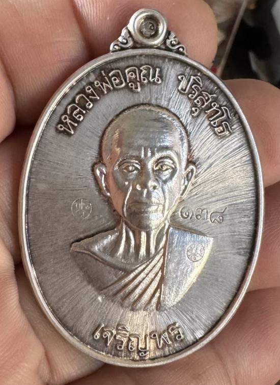 เหรียญ หลวงพ่อคูณ ปริสุทฺโธ เหรียญจัมโบ้รุ่นเจริญพรล่าง91 เนื้อเงิน หมายเลข338 มีกล่องครับ(น้ำหนักเงินหนัก36.9กรัม