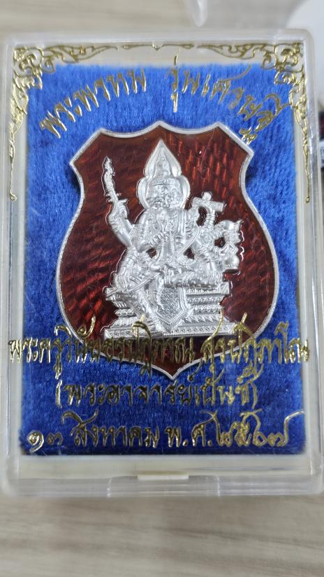 เหรียญพระพรหม รุ่นเศรษฐี พระอาจารย์เบนซ์ วัดราชาฯ กรุงเทพ เนื้อเงินลงยาแดงหนักประมาณ 16 กรัม) หมายเลข ๒๓ พร้อมกล่องเดิม