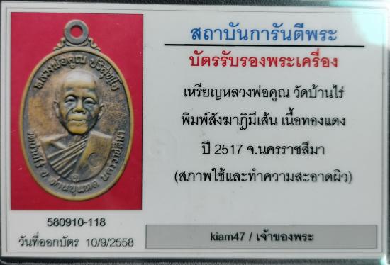 เหรียญหลวงพ่อคูณปี 17 พิมพ์สังฆาฏิมีเส้น เนื้อทองแดง สภาพสวย น่าเก็บสะสม พร้อมบัตรการันตีพระ เก็บไว้สบายใจ