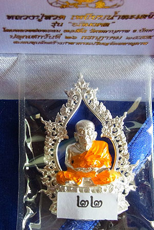 เหรียญฉลุ อภิมงคล พ่อท่านพรหม วัดพลานุภาพ จ.ปัตตานี ปี 2555 เนื้อเงินลงยา