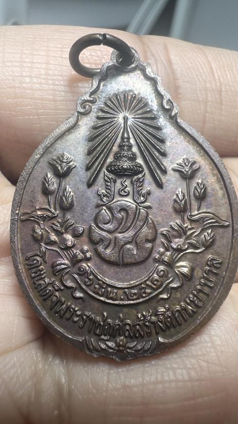 เหรียญรุ่นสร้างโรงพยาบาล หลวงปู่แหวน วัดดอยแม่ปั๋ง พิมพ์หลังภปร. เนื้อทองแดง ปี 2521 |