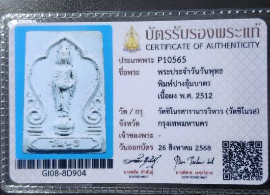 พระประจำวันวันพุธ พิมพ์ปางอุ้มบาตร เนื้อผง พ.ศ.2512 วัดชิโนรสารามวรวิหาร(วัดชิโนรส) กรุงเทพมหานคร