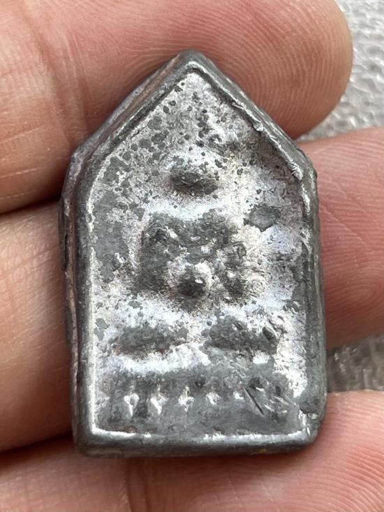 เหรียญหล่อเนื้อชินตะกั่ว หลังจารย์มือ ไม่ทราบที่